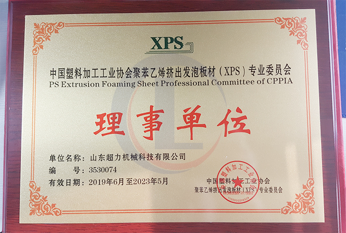 山東超力機械有限公司,憑借過硬的二氧化碳擠塑板(CO2-XPS)研發(fā)、生產(chǎn)技術(shù)與優(yōu)異的擠塑板設(shè)備質(zhì)量,被中國塑料加工工業(yè)協(xié)會聚苯乙烯擠出發(fā)泡板材(XPS)專業(yè)委員會授予協(xié)會理事單位。...